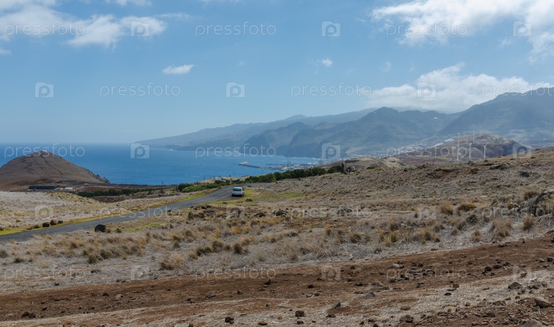 Береговая линия к востоку от Мадейры от мыса Сан-Лоренцо. Легкая дымка. Остров Мадейра, Португалия
