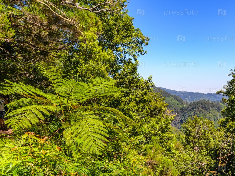 Вдоль левады Рибейро-Фриу растут эндемичные папоротниковые деревья. Остров Мадейра, Португалия