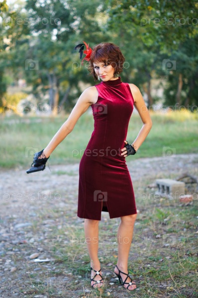 Девушка с пистолетом на природе