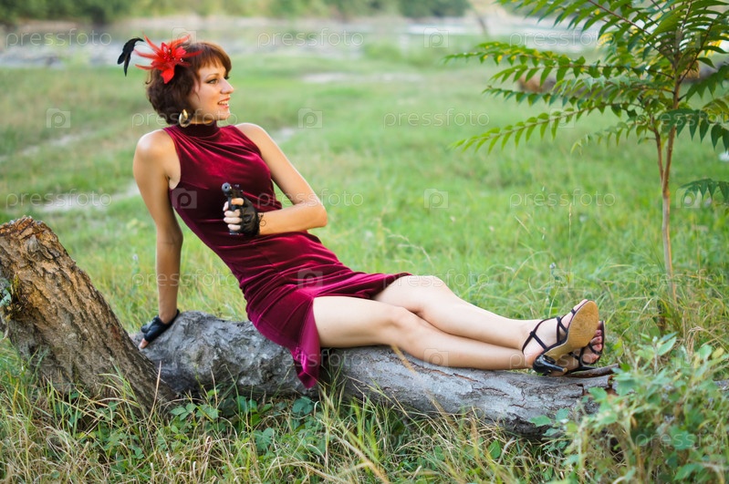 Девушка с пистолетом на природе