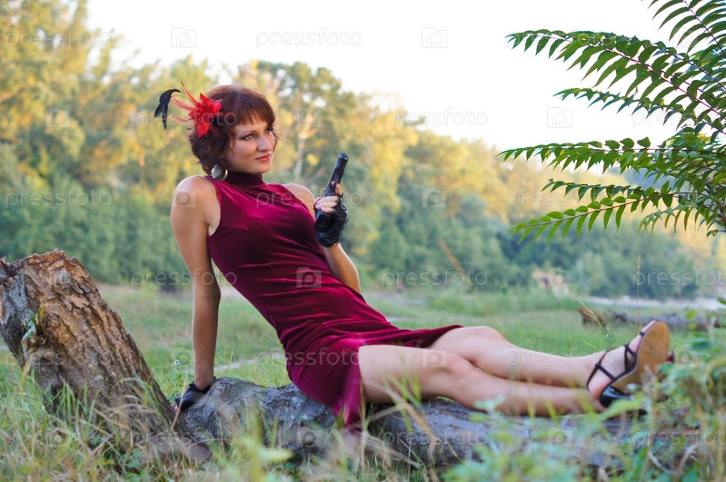 Девушка с пистолетом на природе