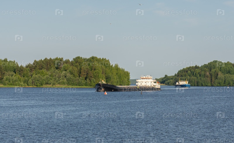 Баржа плывет по Волге