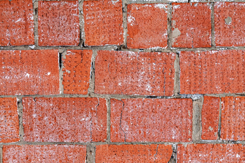 Стена сложена из старого красного кирпича