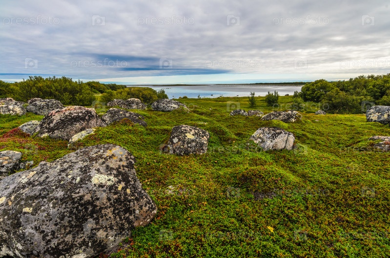 Дикая полярная природа Большой Заяцкий остров. Соловецкий архипелаг, Белое море, Россия