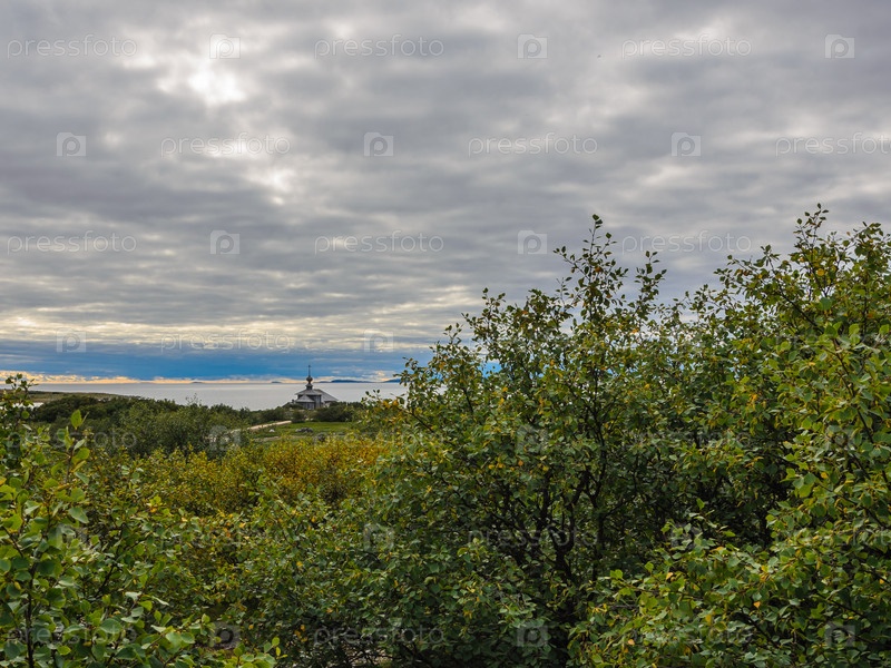 Пейзаж Большого Заяцкого острова. На заднем плане Андреевский скит. Соловецкий архипелаг, Белое море, Россия