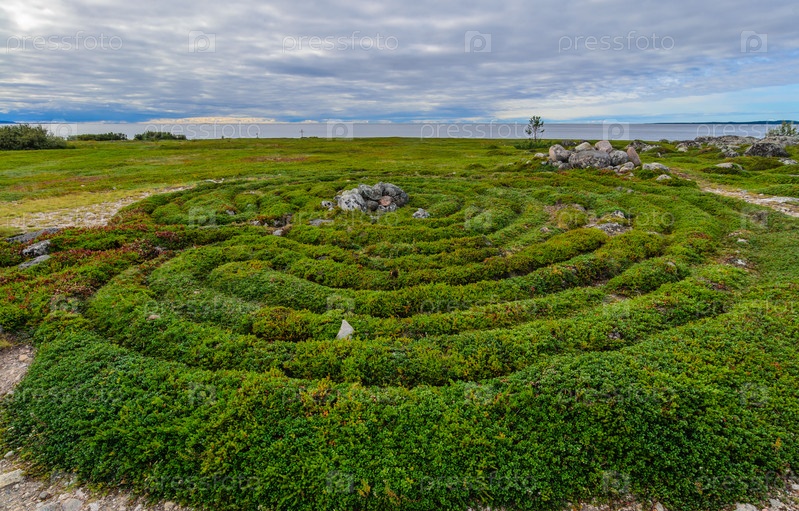 Древний каменный лабиринт на Большом Заяцком острове. Соловецкий архипелаг, Белое море, Россия