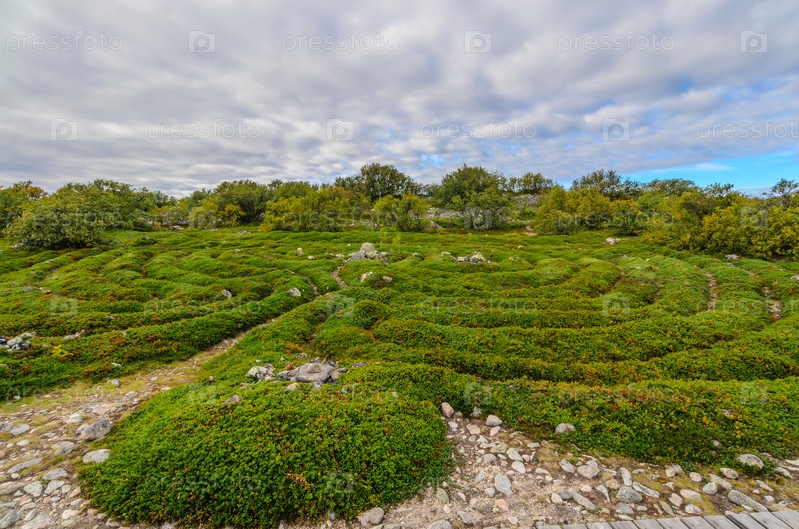 Древний каменный лабиринт на Большом Заяцком острове. Соловецкий архипелаг, Белое море, Россия