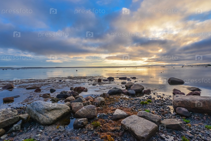 Белое море, морской пейзаж, закат. Соловецкий архипелаг, Россия
