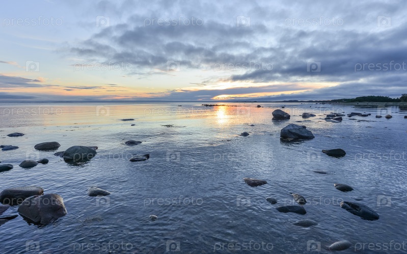 Пейзаж после заката на Белом море. Соловецкий архипелаг, Белое море, Россия