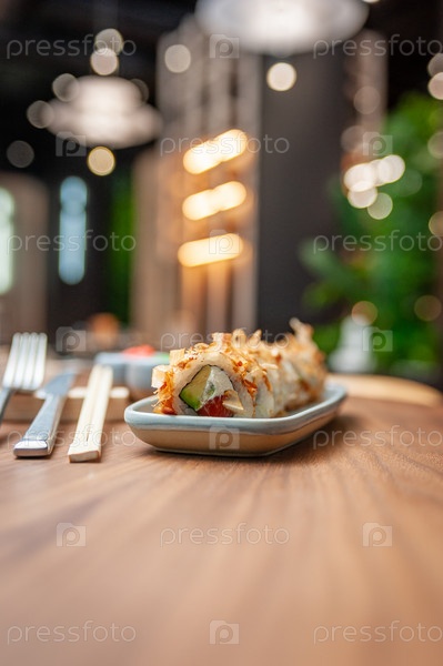 Классический суши-ролл «Бонито» с хлопьями тунца, лососем и авокадо