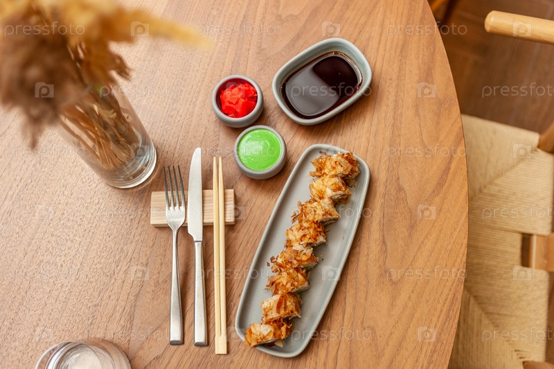 Классический суши-ролл «Бонито» с хлопьями тунца, лососем и авокадо