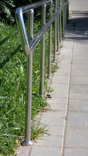Металлический забор в парке в сухой солнечный летний день