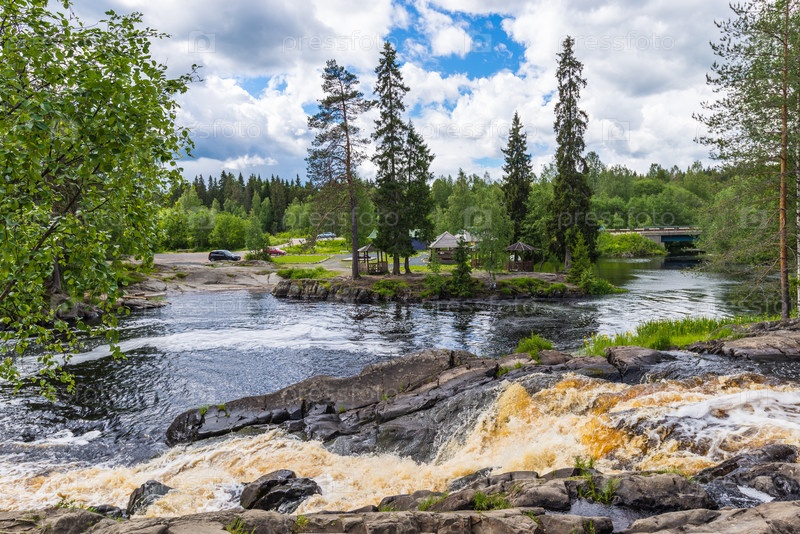 Пейзаж с водопадом Река Тохмайоки (Рускеала). Карелия, Россия