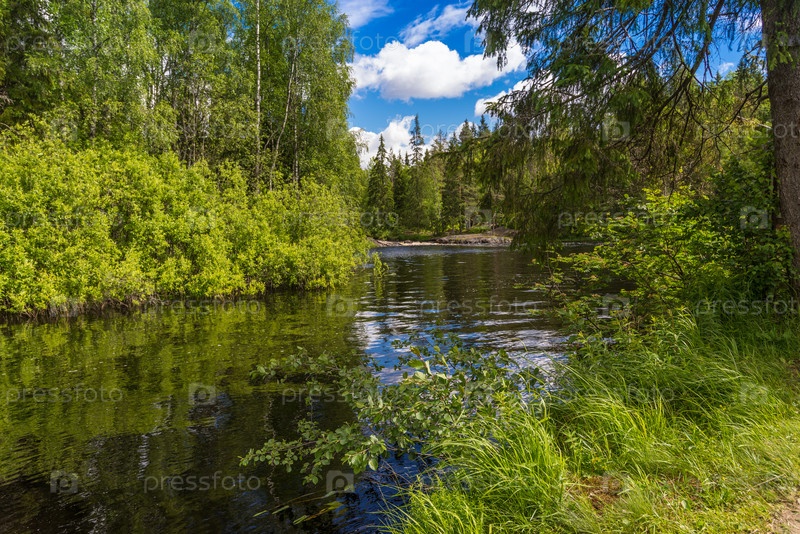 Красивый вид Тохмайоки (Рускеала) с отражением. Рускеала, Карелия, Россия