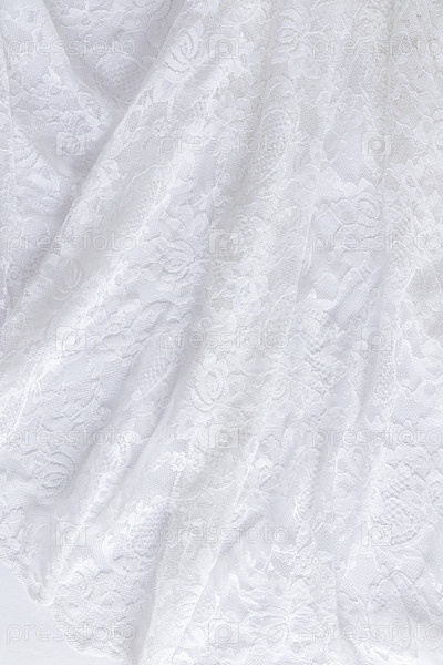 Мягкие волны кружевной белой ткани. часть платья невесты. Свадебное кружево с растительным орнаментом. Шикарный свадебный фон