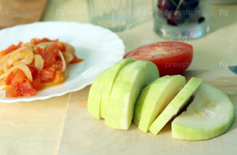 Нарезанный кабачок на разделочной доске