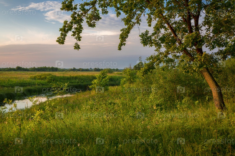 Небольшая речка на вечернем пейзаже