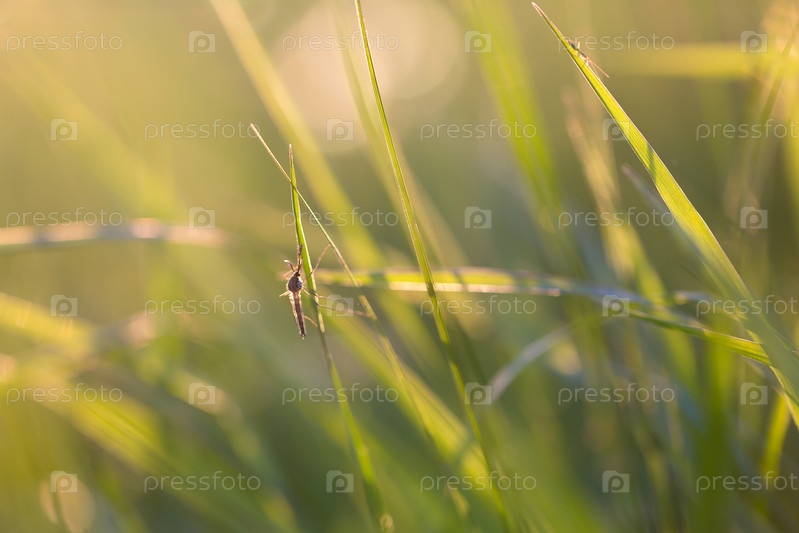Комар на траве в солнечном свете