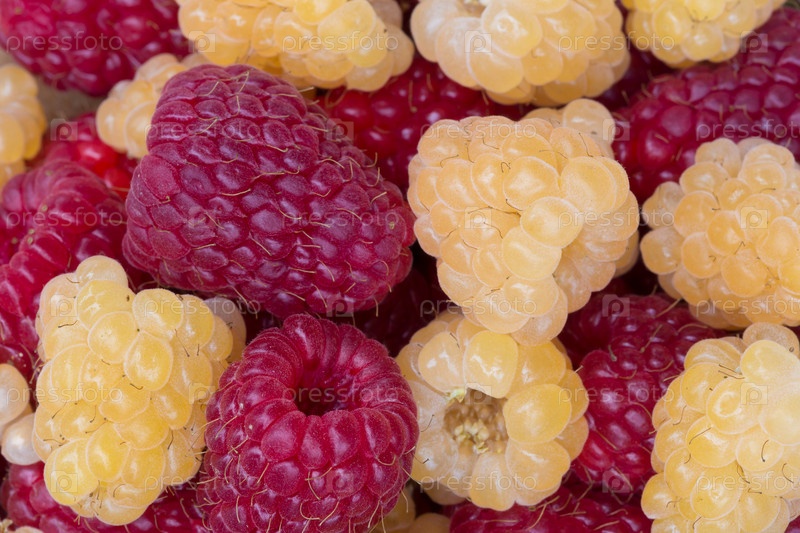 Красная и желтая малина крупным планом