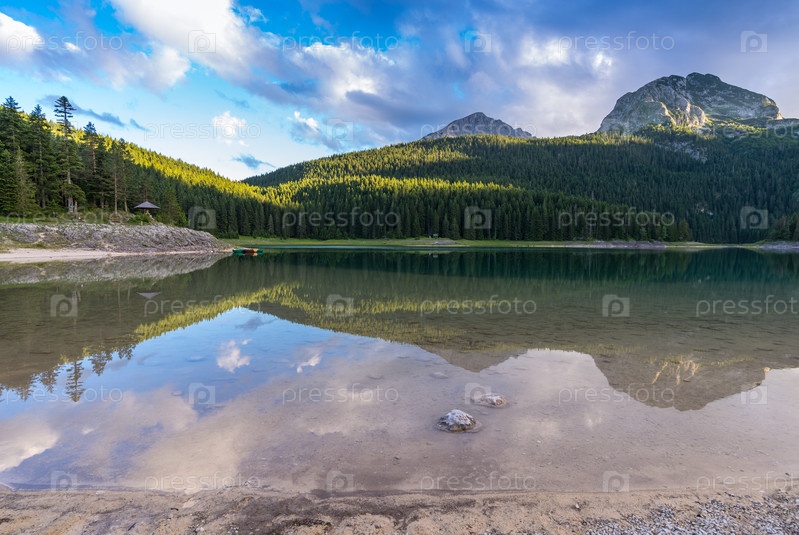 Пейзаж Черного озера с отражением. Национальный парк Дурмитор, Черногория, Европа