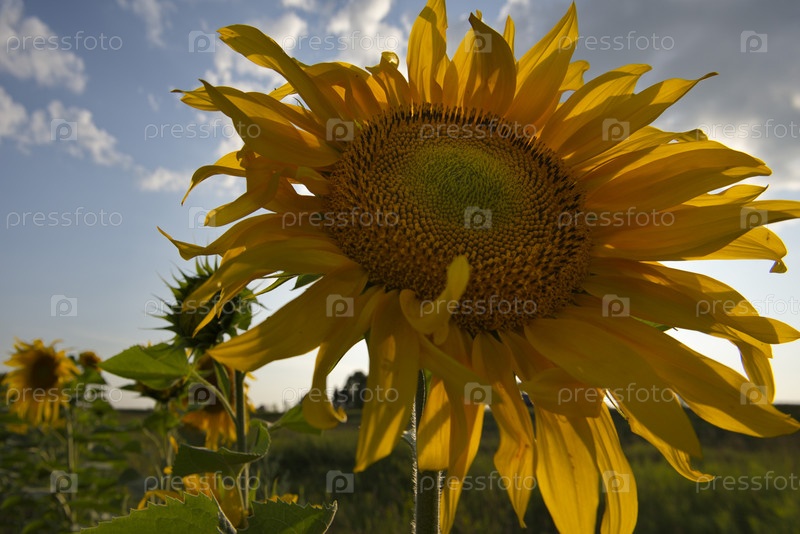 Россия. Алтайский край. Цветущий подсолнечник на бескрайних фермерских полях возле села Колывань