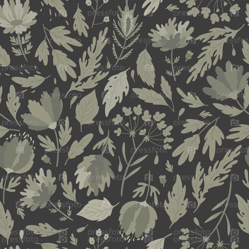 Бесшовные цветы, листья. Модные принты