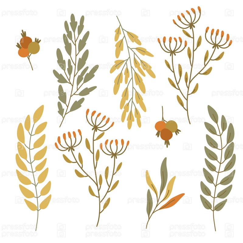 Векторный набор Осенние листья. Гербарий, ветки деревьев