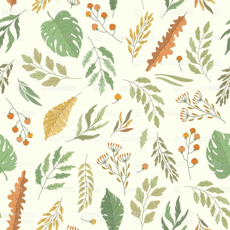 Бесшовный узор с веткой, листьями и ягодами