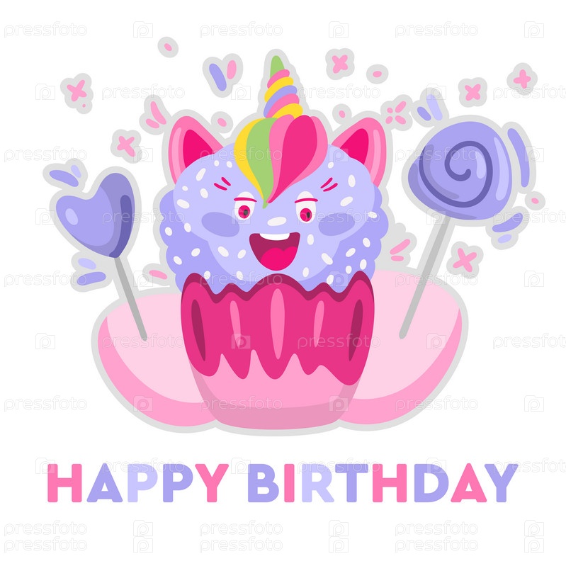 Мультфильм милый сладкий торт единорога, улыбка. День рождения