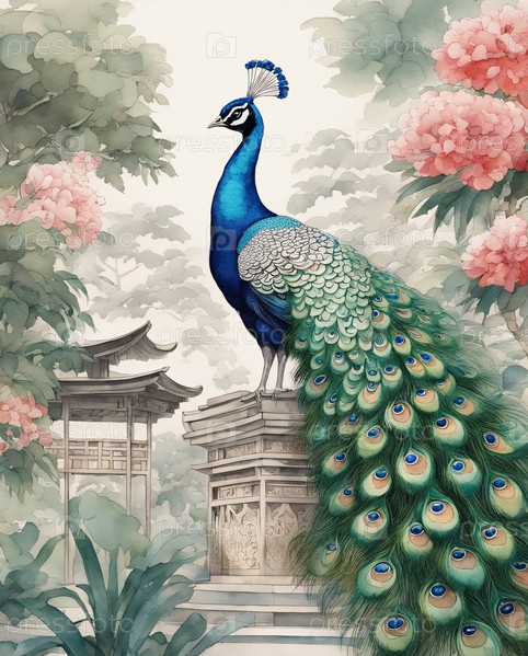 Акварельная иллюстрация павлина