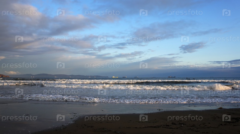 Панорама морского пейзажа. Бухта Находка, Россия