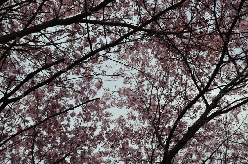 Розовые цветы сакуры, вишни на ветвях с распускающимися листьями весной