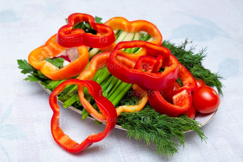 Нарезанный сладкий перец и зелень в тарелке