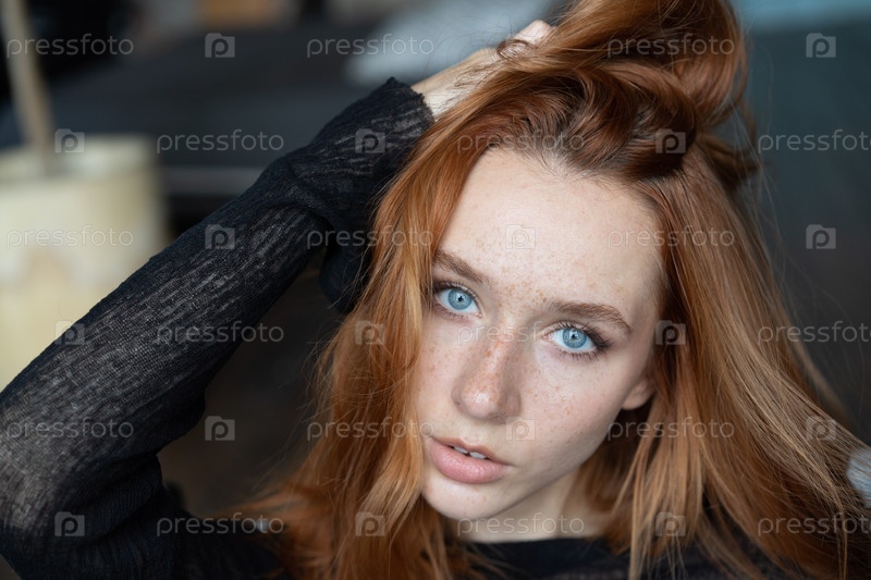 Портрет молодой красивой женщины с рыжими волосами в студии