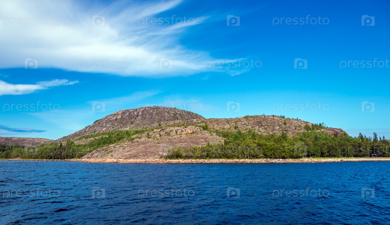 Вид на скалистый остров Немецкий Кузов с моря. Кузовский архипелаг, Белое море, Россия