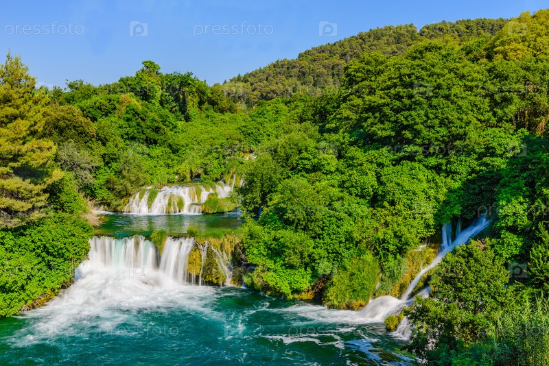 Великолепный каскад водопадов на реке КРКА. Национальный парк КРКА Хорватия, Европа