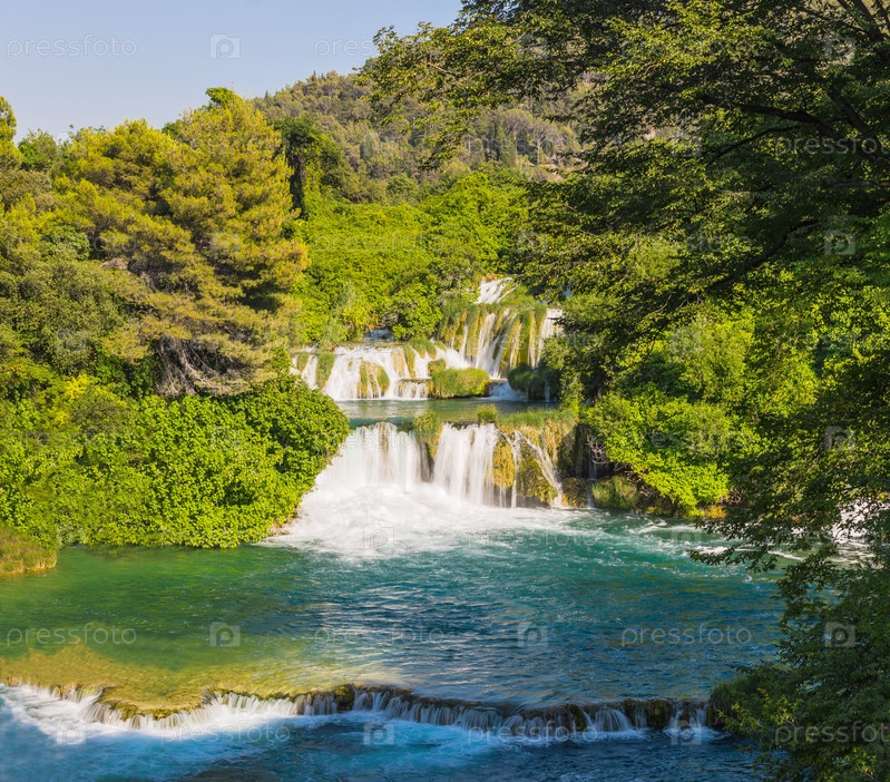 Водопад Скрадинский Бук в солнечный день. Национальный парк Крка, Хорватия. Национальный парк КРКА Хорватия, Европа