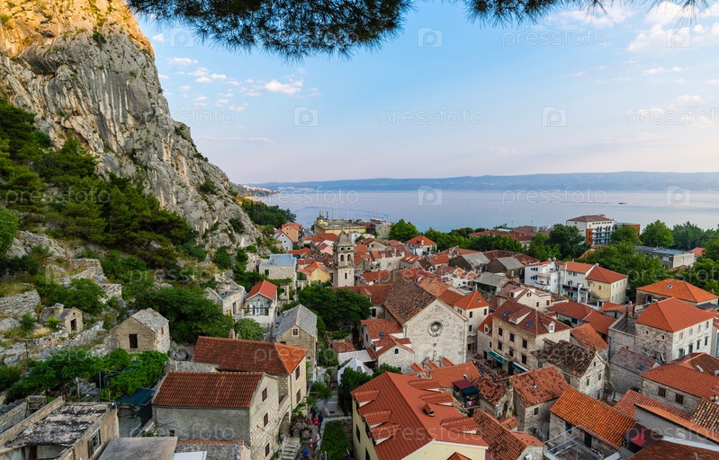 Вечерний вид на город Омиш. Хорватия, Европа. Омиш, Хорватия, Европа
