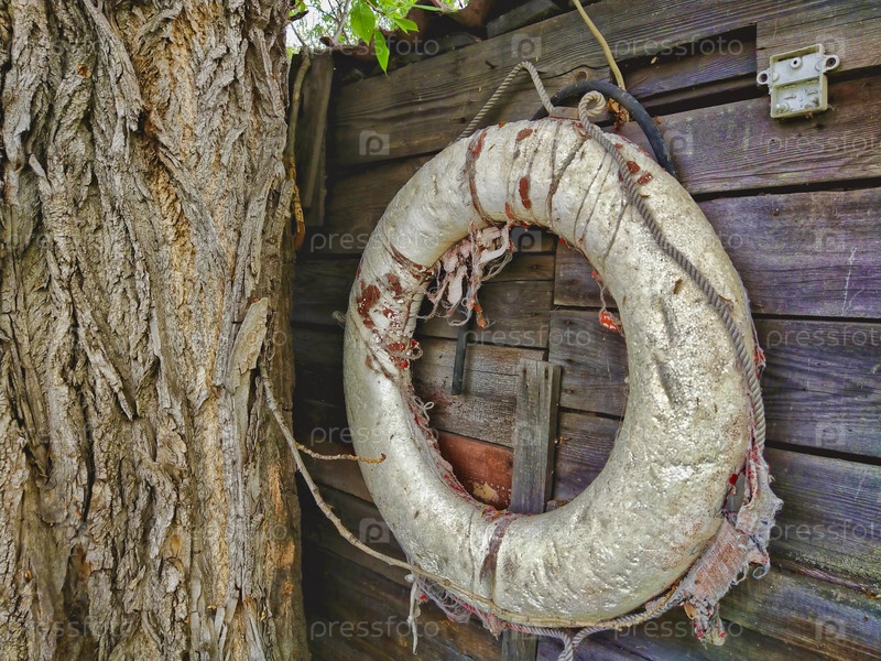 Старый спасательный круг на стене