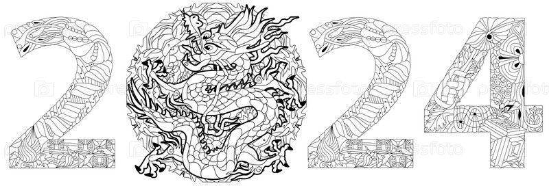 2024 текстовый дизайн логотипа для раскраски. Шаблон оформления Праздничный типографический плакат, баннер или поздравительная открытка с Новым годом