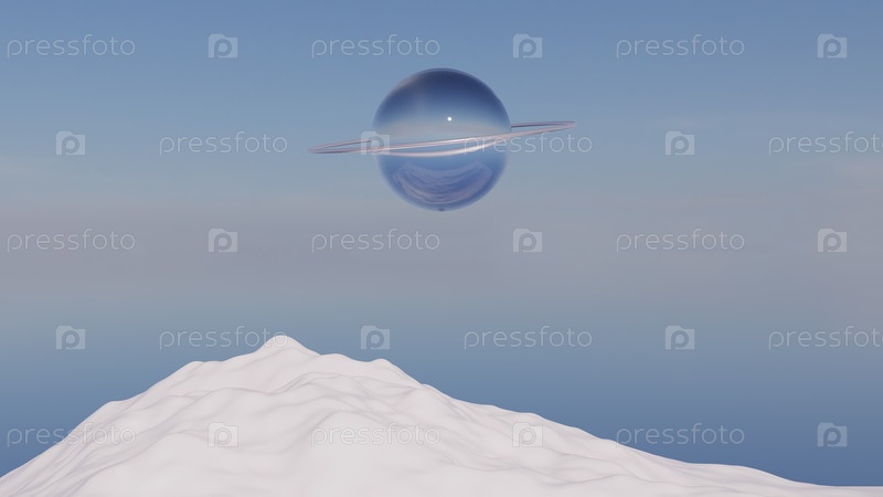 Сюрреалистический пейзаж со стеклянными предметами, 3D-рендеринг