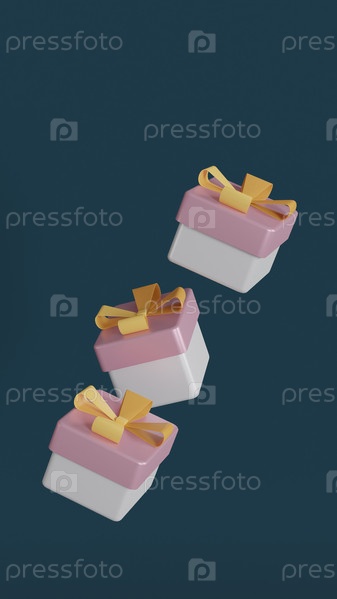 3D-рендеринг летающих подарочных коробок, шаблон поздравительной открытки