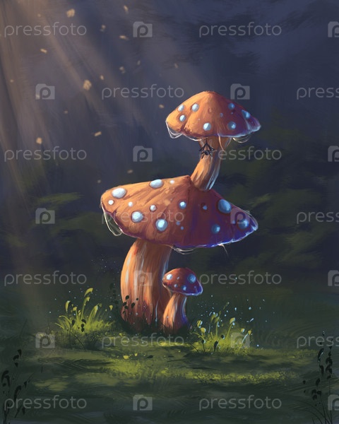 Фантастический гриб в темном лесу