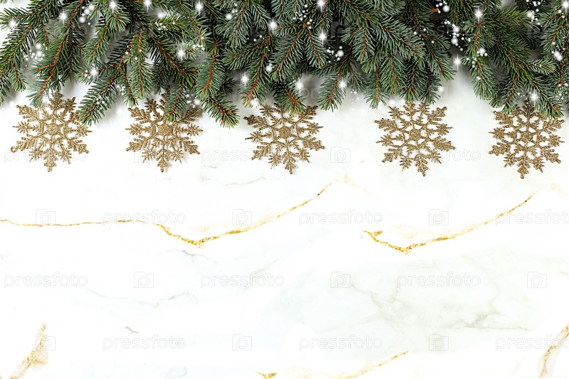 Рождественская и новогодняя композиция 2024, фон с синими еловыми ветвями с праздничными украшениями на светлом столе, баннер для праздничного экрана, шаблон для дизайна. Праздничная открытка, избирательный фокус,