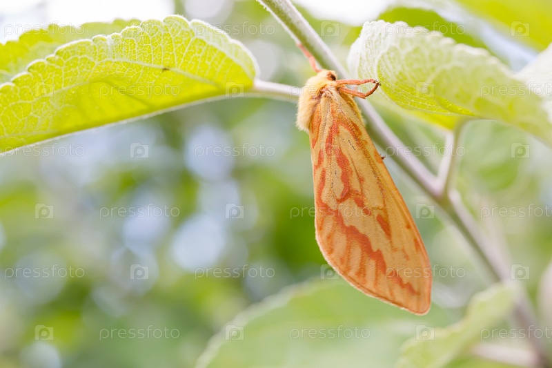 Бабочка тонкопряд хмелевый на ветке