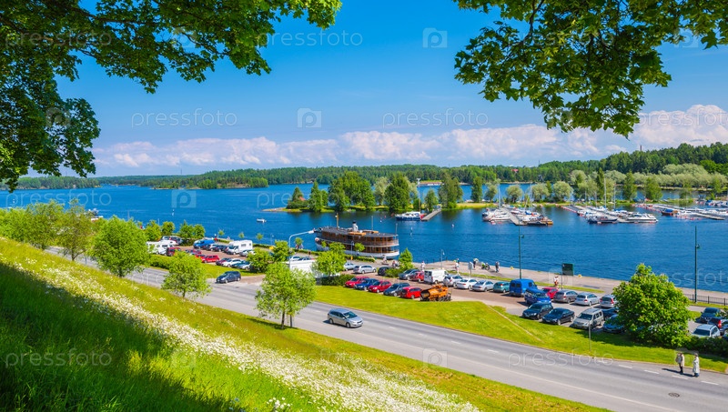 Пейзаж озера в городе Лаппеенранта. Финляндия