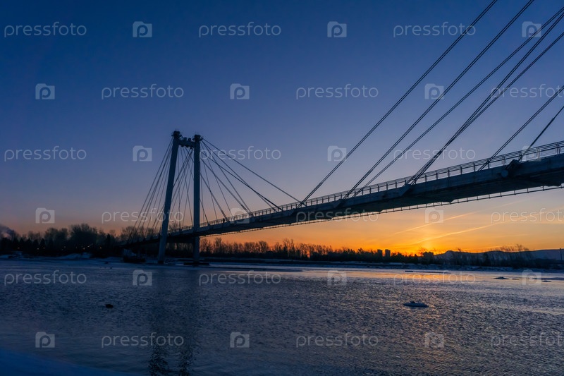 Зимнее морозное утро над Енисеем в центре Красноярска