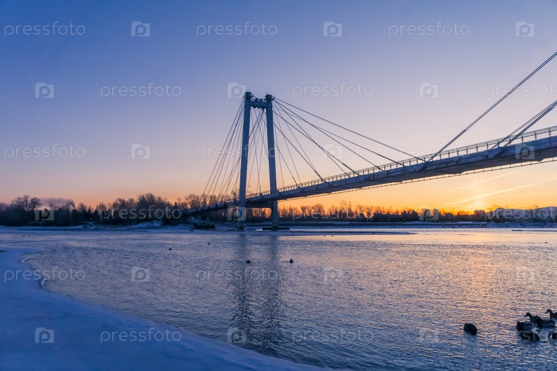 Зимнее морозное утро над Енисеем в центре Красноярска