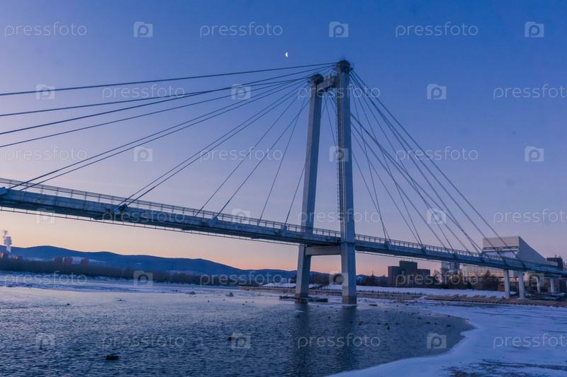 Зимнее морозное утро над Енисеем в центре Красноярска