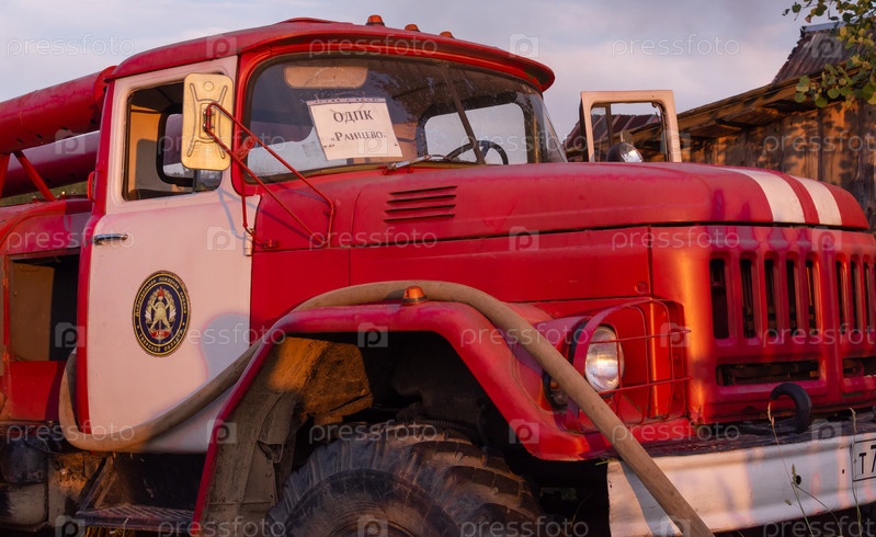 На место прибыли сотрудники пожарной службы. Пожарная машина на месте пожара. Пожар в деревне. Горят деревянные дома в селе. На месте предприятия промышленности работают сотрудники пожарной службы. Пожарная машина на месте пожара. Пожар в деревне. Горящие